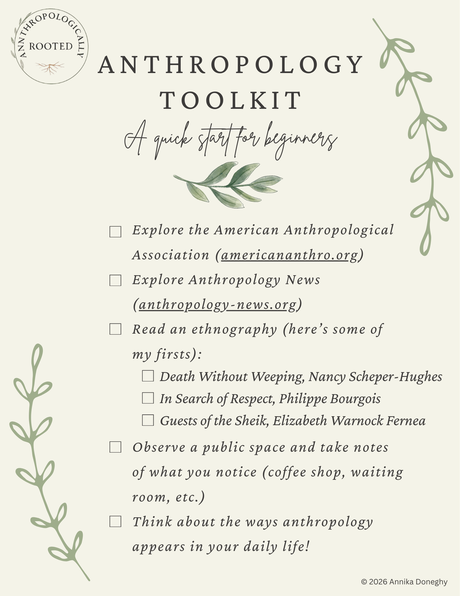This checklist is a quick start to guide you on your anthropology journey. You can view the checklist directly below. If you’d like, you can use this link to download your own pdf copy.